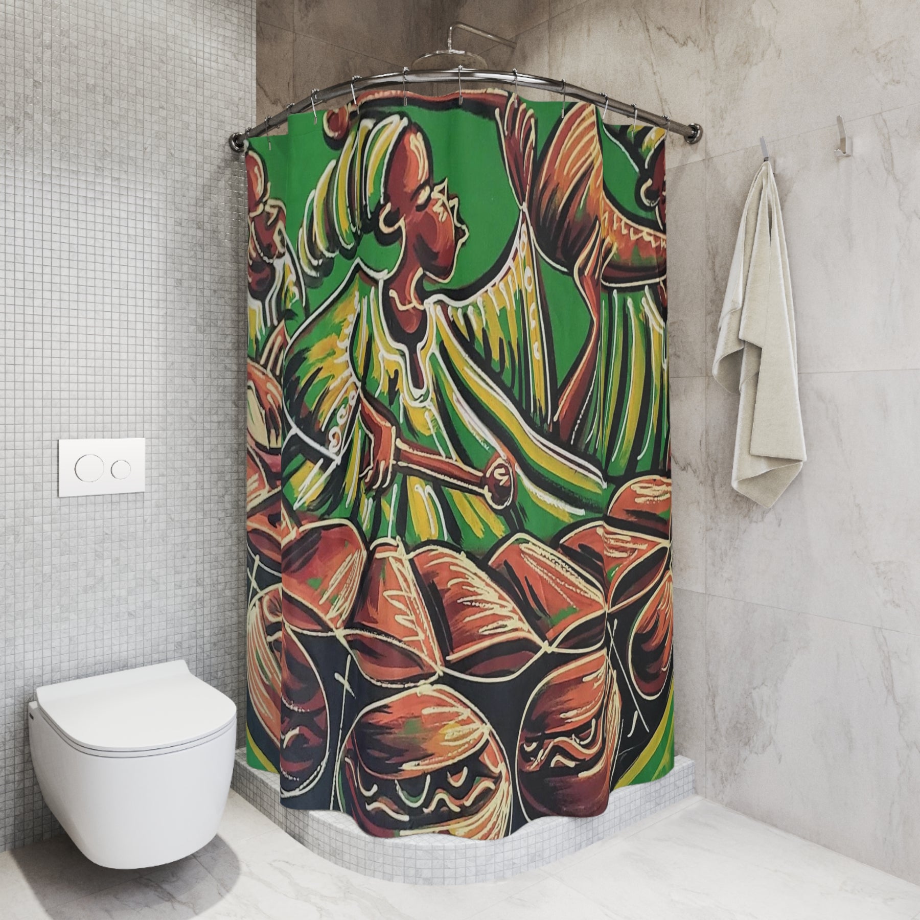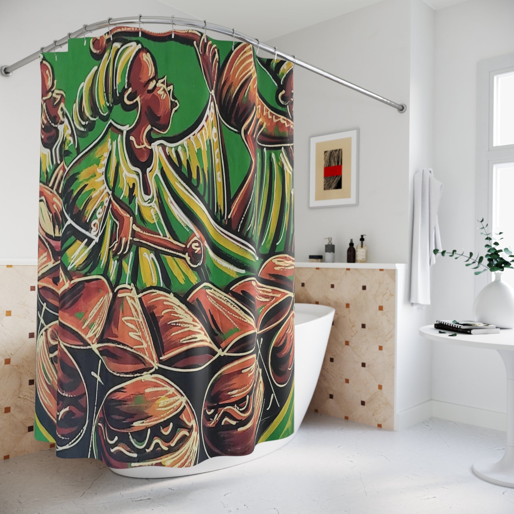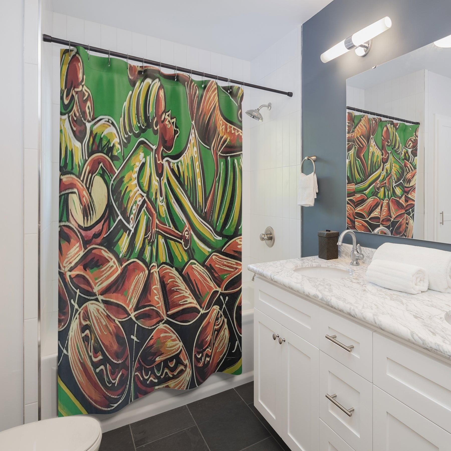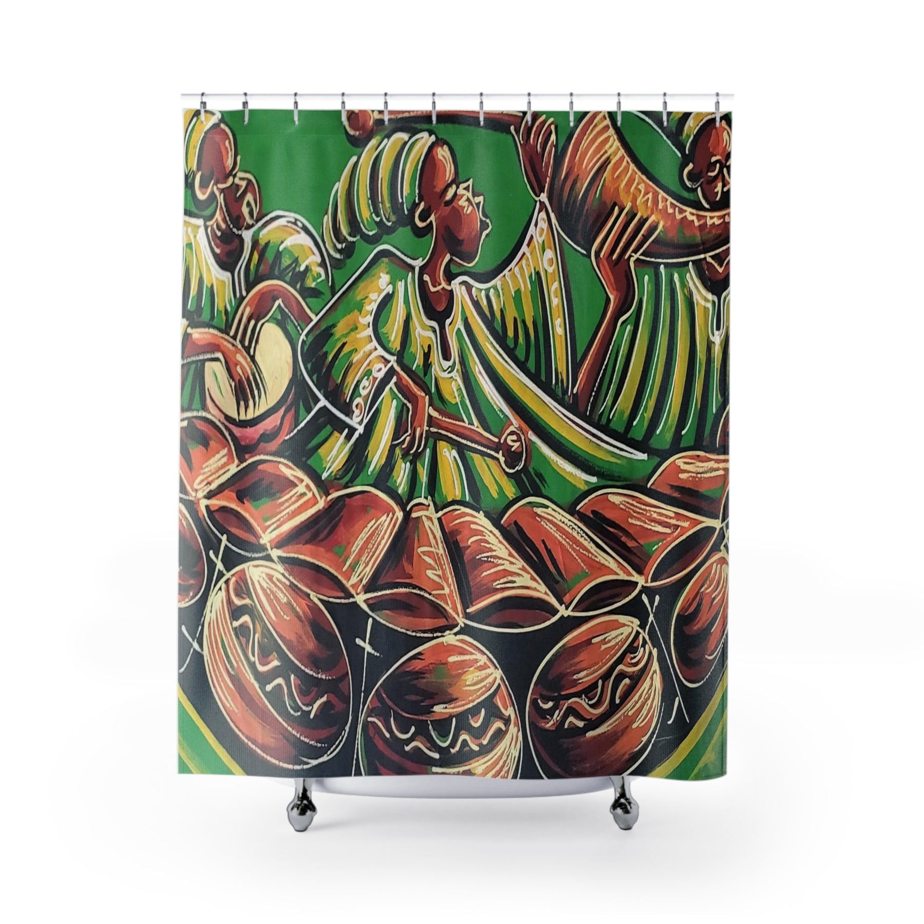 The Musicians Shower Curtain Wall Art (Green) – Rhythms of Heritage and Art
